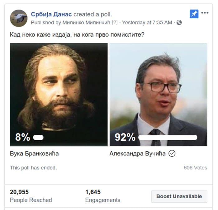 Јуче смо током дана поставили питање нашим читаоцима и пријатељима „Кад неко каже издаја, на кога прво помислите?“. На наше питање могао се дати један од два могућа избора. Први је био Вук Бранковић а други Александар Вучић.