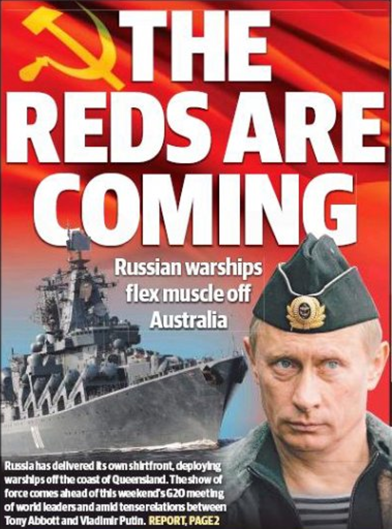 Четвртак ујутро, новине Неwс Цорп у Аустралији освануле су с „хладноратовском“ насловном страном која поручује: „Црвени долазе“. Ово је била реакција на вест од дан раније да, „конвој тешко наоружаних руских ратних бродова, укључујући један са ракетама дугог домета, плове међународним водама према северу Аустралије“.