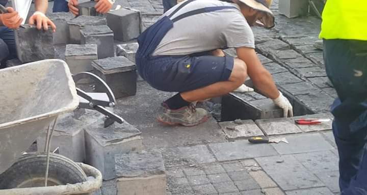 POCELO JE VADJENJE KALDRME NA TRGU REPUBLIKE,INACE KOCKE OD KALDRME SU SPAJANE SILIKONOM!