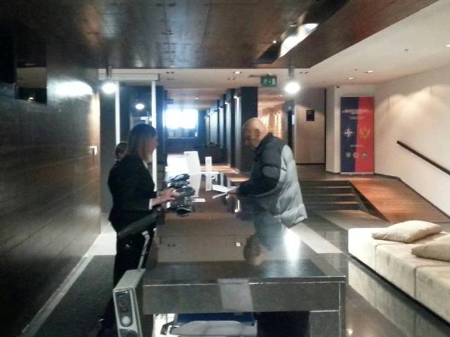Просветни радници из Будве упутили су ултиматум организаторима скупа за промоцију НАТО пакта који се одржава у будванском хотелу „Авала“, као и управи тог хотела да одмах прекину даљи рад и напусте Будву. Ултиматум је, у име својих колега предао Влајко Јањић, а примио га је извјесни пуковник ВЦГ Манојловић. На снимку је приказан Јањић док у холу хотела очекује „надлежног“ да прими текст ултиматума просветних радника Будве.