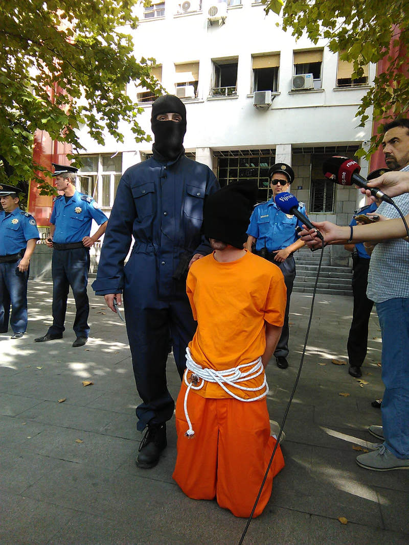 „Откуд вам идеја да ви спроводите демократију у нашој држави“, казао је учесник перформанса који је извршио „погубљење“.