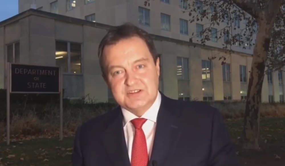Разлози да се Дачић затетура док стоји на равној површини испред Стејт Департмента нису познати, али министар Владе у исто време делује веома поспано.