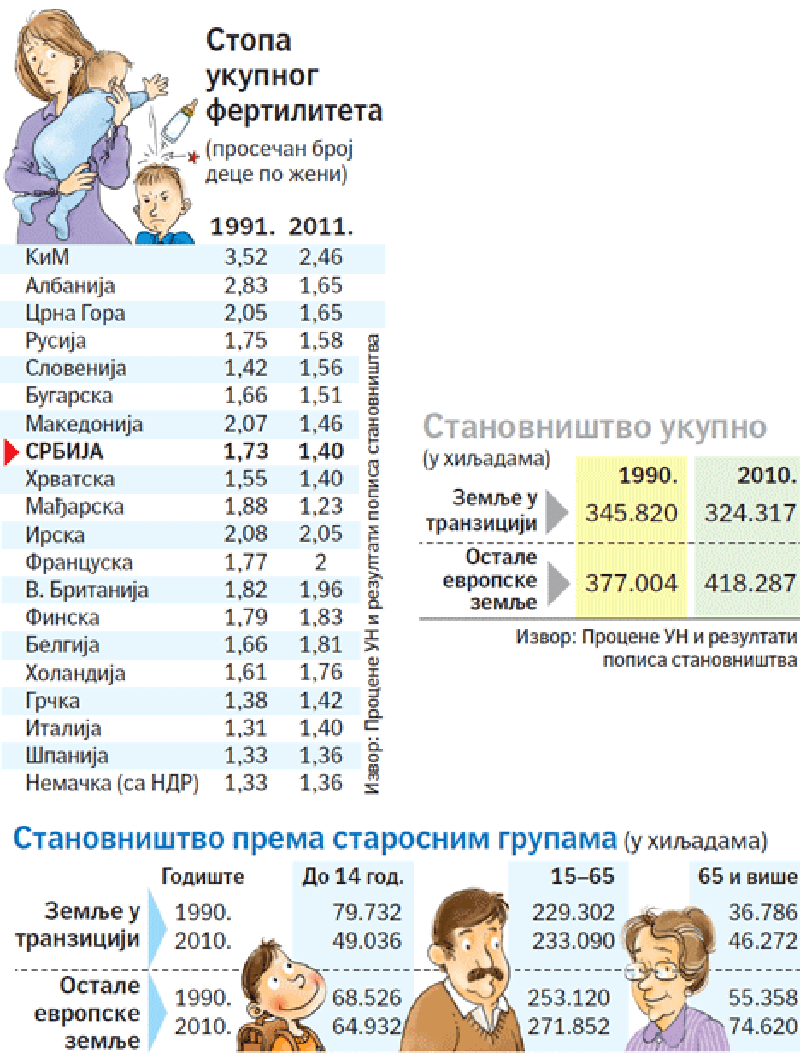Јавност је својевремено била запрепашћена податком да је у Србији 2013. рођено најмање беба од 1900. године, мање него у ратним периодима у прошлом веку. У нашој земљи се, наиме, годишње рађа око 65.000 деце, а умире око 100.000 становника.