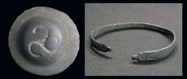 Трибали су врло блиски и Дарданцима. Најкарактеристичнији тип керамике Трибала завршних фаза гвозденог доба биле би шоље са тролисном основом. Сви орнаментални елементи са керамике гвозденог доба Поморавља, који су трибалски, налазе се и на шакастим гривнама“./19 „Посебно занимљиву врсту налаза представљају, међутим, гривне са проширеним завршецима, тзв. шакасте гривне, богато украшене геометријским орнаментима а изведене у техници ливења чија се распрострањеност углавном концентрише око планине Јухора и у Доњем Поморављу.Све ово упућује на чињеницу да је Поморавље имало своје локалне радионице за израду металних предмета од којих неки, као гривне јухорског типа, представљају локалну форму златарске вештине у тим крајевима“./20