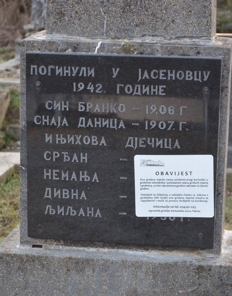 Мало им је било што су их побили на правди Бога већ сада хоће да им уклоне и гробно место а са њим и траг геноцида који су над Србима, Јеврејима и Циганима починили њихови преци.