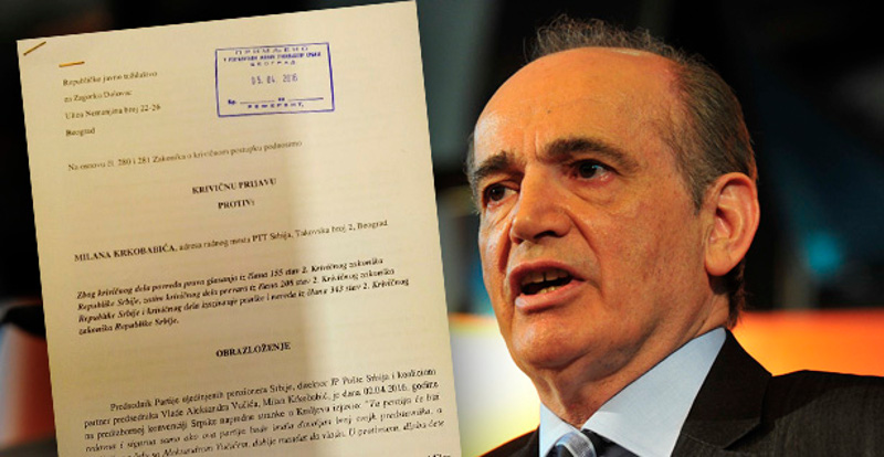 Републичком јавном тужилаштву поднета је данас кривична пријава против председника ПУПС-а Милана Кркобоабића због изјаве да пензионери могу да забораве на пензије ако Вучић изгуби на изборима.