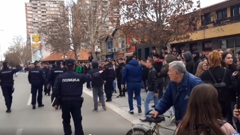 Након парадирања, кошкања и грубих речи, полиција је растерала окупљене средњошколце.
