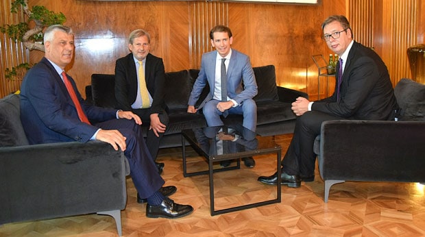 Председник Србије Александар Вучић састао се у Бечу, пред почетак ЕУ самита у Алпбаху, са аустријским канцеларом Себастијаном Курцом, европским комесаром за проширење Јоханесом Ханом и представником привремених институција у Приштини Хашимом Тачијем.