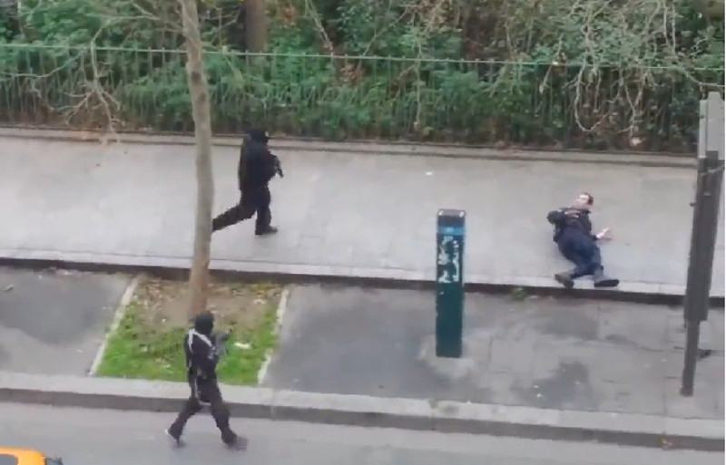 Једна од најшокантнијих сцена на снимку је тренутак када нападачи схватају да је полицајац који лежи на тротоару још жив. Мирно прилазе рањеној жртви – тада један терориста штити другог који „оверава“ полицајца са два хица у главу.
