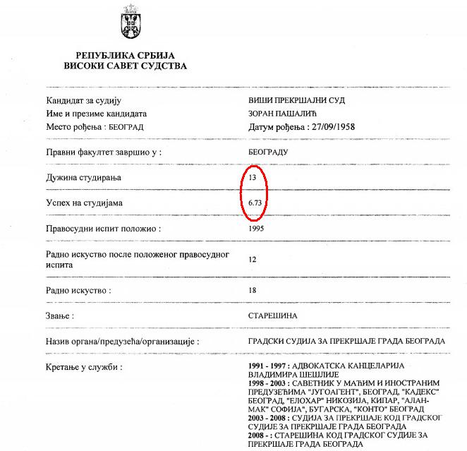 Како Инфо журнал сазнаје кандидат Српске напредне стране за Заштитника грађана, Зоран Пашалић, студирао је пуних 13 година и на крају завршио са оценом 6.73! Неко после толико година студирања, за ту позицију би најмање требао да има оцену 10.