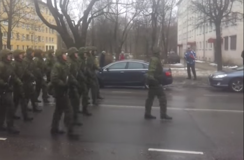 Приликом марша снага НАТО пакта у пограничном естонском граду Нарви који се налази око 300км од руске границе један од локалних становника поздравио је присутну марширајућу НАТО силу машући руском државном заставом успут певајућу химну Совјетског Савеза. Погледајте и видео читаве ујдурме: