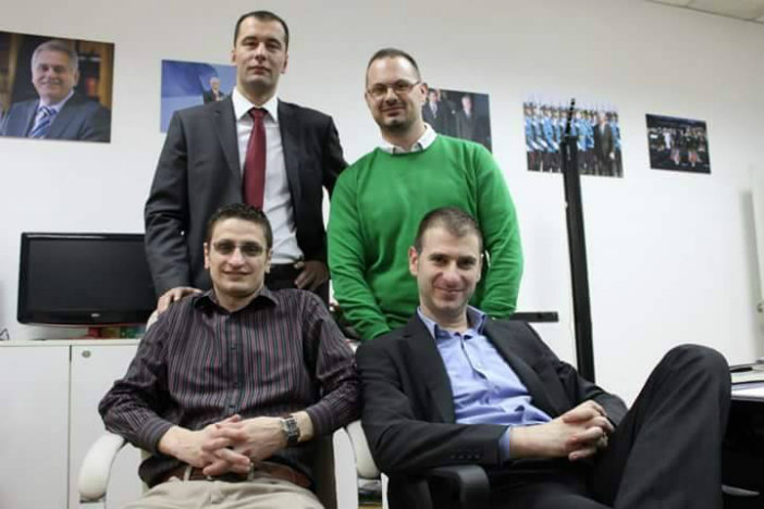 Ево га СНС бот у друштву шефа ботова Славише Мићановића Мићана у централи странке на Новом Београду.