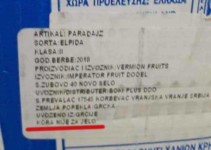 Као поздрав из Смедерева, добили смо и фотографију декларације парадајза са нејестивом кором. Хоће ли поново рећи, „штампарска грешка“?!