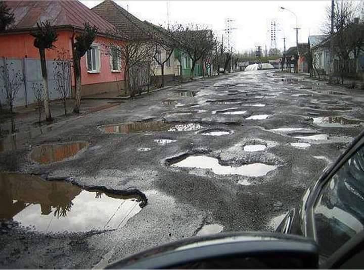 Ова фотографија направљена је у једном банатском месту и показује на шта личи саобраћајна инфраструктура у Србији. У исто време велеиздајнички и лоповски режим Александра Вучића узима кредите у вредности од милијарду евра како би шиптариума о српском трошку правио аутопут док у Србији на локалу као да се живи на Месецу па су нам путеви пуни кратера као што можете видети на овој форографији. Ко је бре овде луд а ко збуњен а ко злонамеран и ко то маму вам издајничку и лоповску директно ради против интереса српског народа и државе?