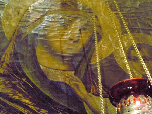 Српски народ је доле, подсећа он, увек пролазио голготу, а Мајка Божија моли свог сина да престану страдања.