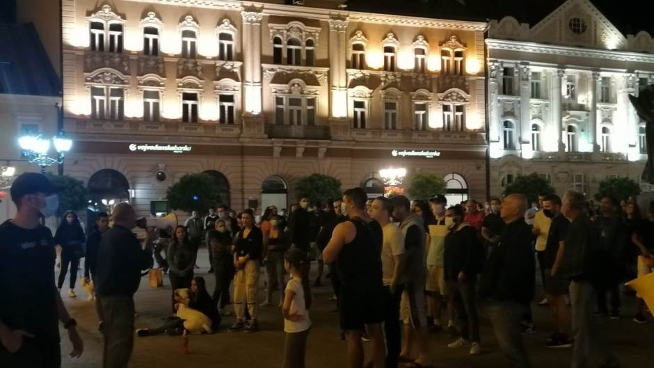 На новосадском Тргу слободе окупили су се људи који протестују против најава нових мера у Србији, о којима је говорио председник Србије Александар Вучић.