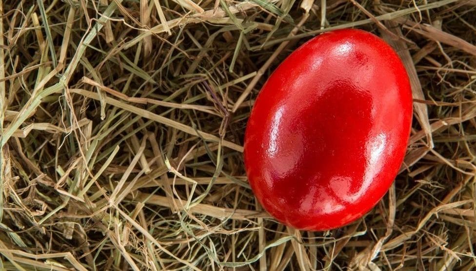 Како је боја Ускрса црвена, симболизује невино проливену Исусову крв, обичај у Србији је да се прво јаје фарба црвеном бојом.