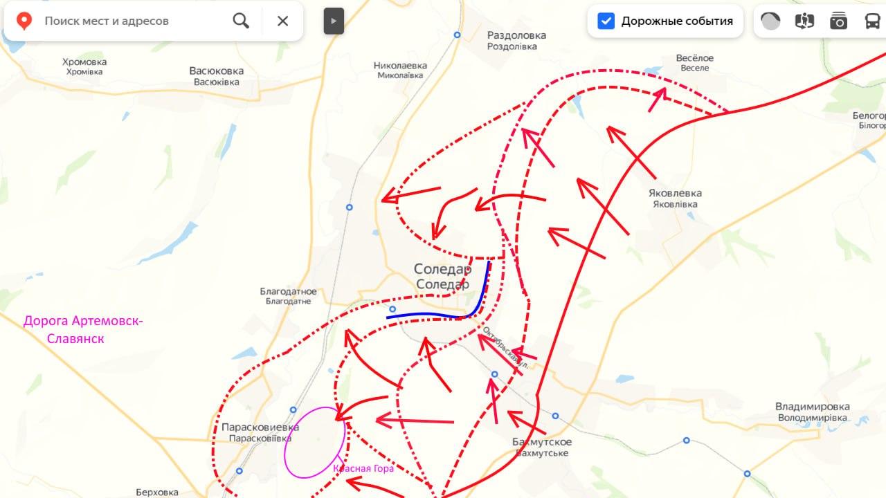 Убрзо потом је војни аналитичар Јуриј Подољака објавио да су одреди руске приватне војне компаније „Вагнер“ успоставили контролу над насељима Опитное, Краснаја Гора и Парасковиевка код Бахмута. Контролом над два последња – Руси пресецају саобраћајницу која повезује Бахмут са Соледаром и Северском.