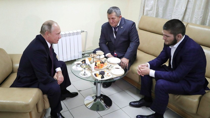 «Выиграл убедительно»: Путин встретился с Хабибом Нурмагомедовым и его отцом
