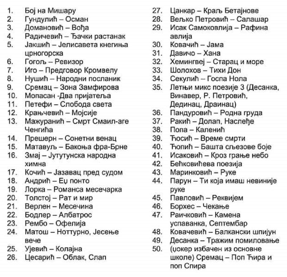 Списак који већ данима кружи по твитеру и који представља листу дела која је из школских уџбеника избацио Завод за унапређивање образовања и васпитања поклапа се са оним који су објавиле „Новости“.