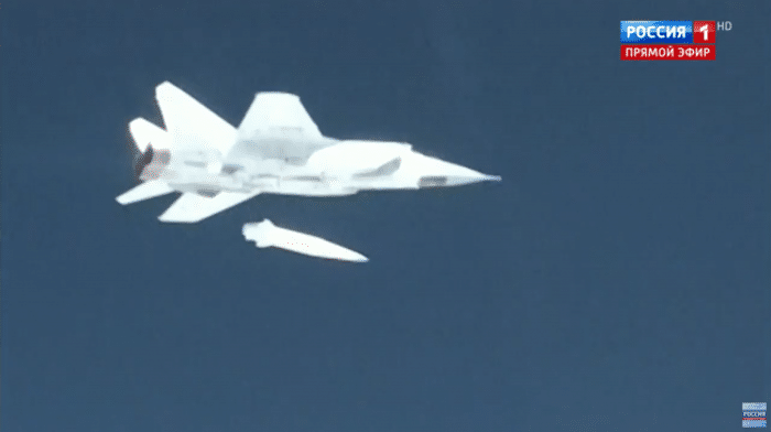 Снимак прве борбене употребе авио-ракетног система Кинжал из зоне специјалне војне операције објавило је Министарство одбране.