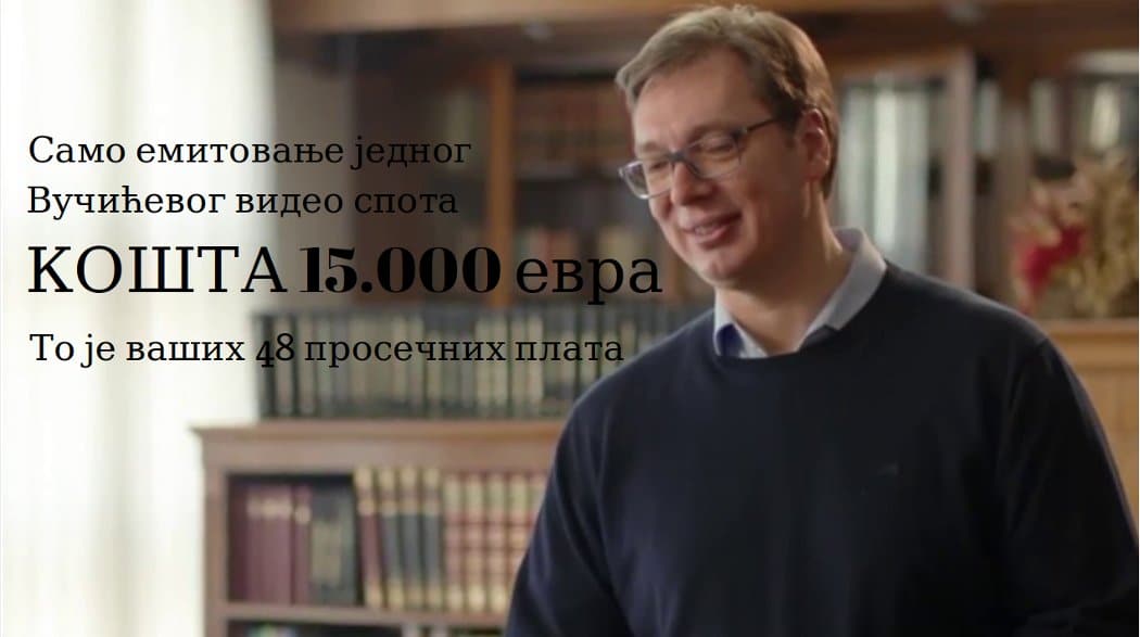 Новинар Данаса Раде Радовановић, један од потписника Апела 100 којим је тражено од Саше Јанковића да се кандидује за председника, рекао је да емитовање једног предизборног спота Александра Вучића кошта око 15.000 евра, што је, према његовој рачуници, износ за који грађанин са просечном платом мора да ради четири године.