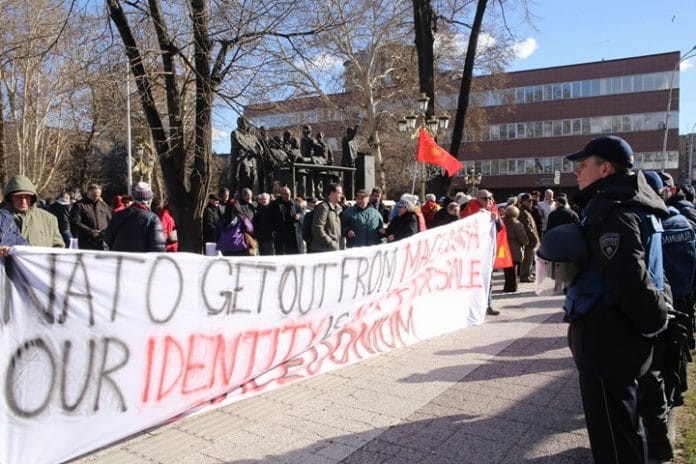 ОпширнијеНа двоструким протестима испред Собрања, против НАТО-а и против антимакедонске политике актуелне Владе, запаљена је застава Алијансе, пренела је телевизија…
