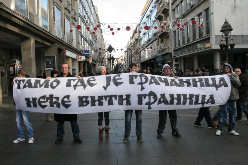 Активисти више удружења окупљених око Иницијативе „Никад граница – Косово је Србија“ поставили су данас у Кнез Михаиловој улици у…