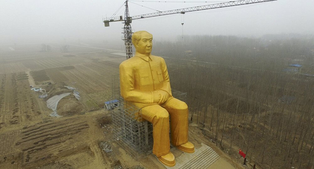 Група кинеских бизнисмена подигла jе усред jедне пољане, у централноj провинциjи Хенан, огромну позлаћену скулптуру некадашњег кинеског вође Mао Цедунга…