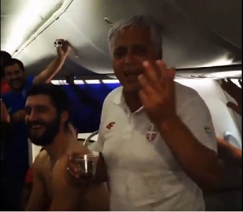 Сјајна атмосфера влада у авиону српских олимпијаца на путу за Београд. Dnevna doza sporta
