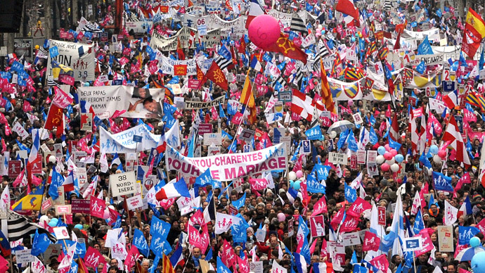 Десетине хиљада француских породица, активиста и конзервативца марширало је данас у Паризу против закона који би омогућио уколико буде усвојен,…