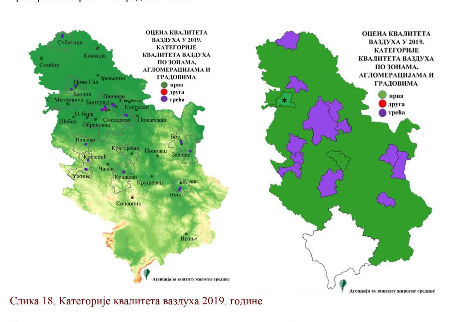Прекомерно загађен ваздух током 2019. године удисао се у Београду, Нишу, Смедереву, Kосјерићу, Панчеву, Новом Саду, Ужицу, Бору, Ваљеву, Kраљеву,…