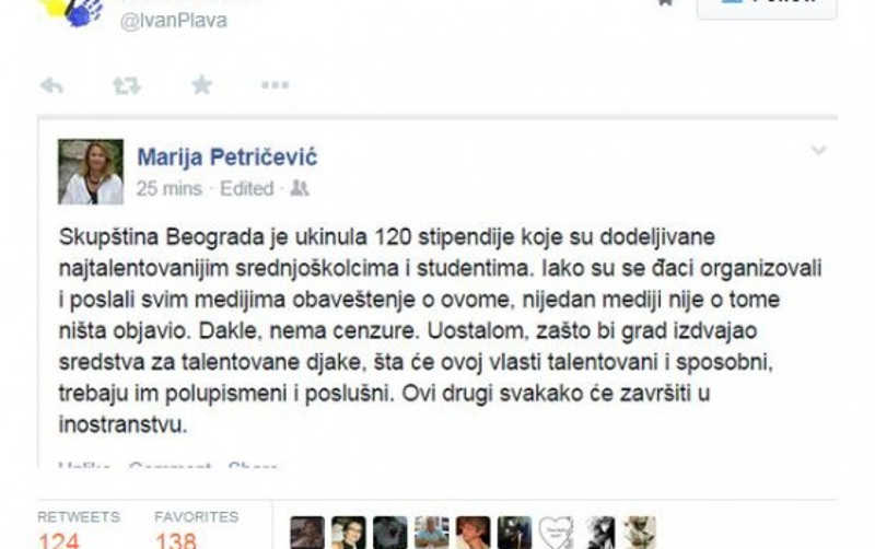 Скупштина града Београда укинула је 120 стипендија које су додељиване најталентованијим средњошколцима и студентима. Данас се на твитеру појавила информација…