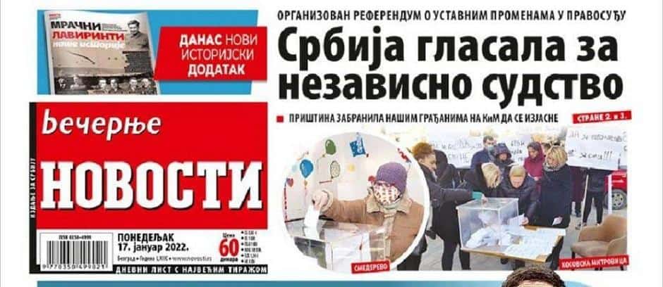 Вечерње новости, чији је главни и одговорни уредник Милорад Вучелић, „пораниле“ су са резултатима гласања са референдума о промени Устава,…