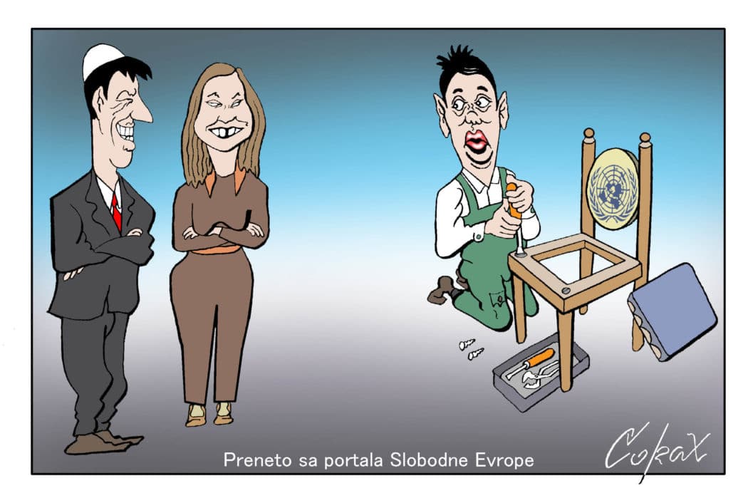 Како то изгледа када се газда смеје сопственој слугерањи и његовој велеиздаји. Кораксова карикатура пренета је са портала „Слободне Европе“…