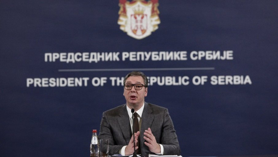 ПРЕДСЕДНИК Србије Александар Вучић одговарајући на питања новинара после обраћања поводм плана „велике петорке“ за Косово и Метохију.