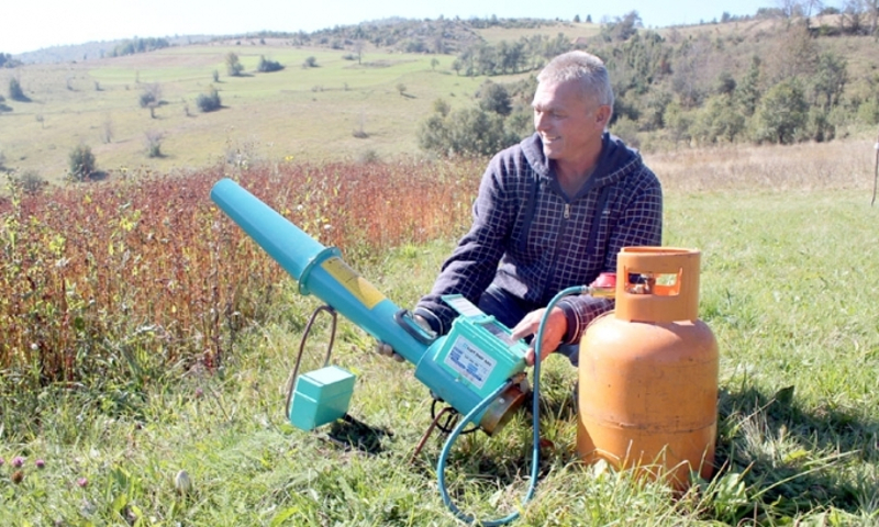 – Чим сам сазнао где могу да купим гасни топ, пут под ноге, па у Крушевац. Искеширам 300 евра и већ сам увече био на положају поред њиве. Кад је топ грунуо први пут у њиви у којој су већ били и јазавци и дивље свиње била је општа пометња, паника и бежанија до те мере да сам се и сам смејао. И ето, спасих се напасти, а и коначно да се наспавам јер топ може да се подеси да груне на 10, 15 и 30 минута, колико човек процени да треба и уређај на топу сам све програмира и испаљује. После мене и многи други су купили гасне топове и сада на Златару грува, како у шали кажу Златарци, као на Скадру, жртава нема, али вајде има.