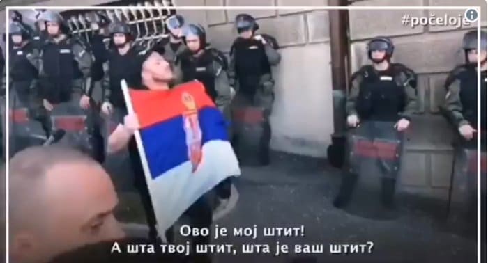 Урош Савић, млади активиста Двери из Аранђеловца. Ухапшен и претучен након овог потресног говора испред председништва Србије.