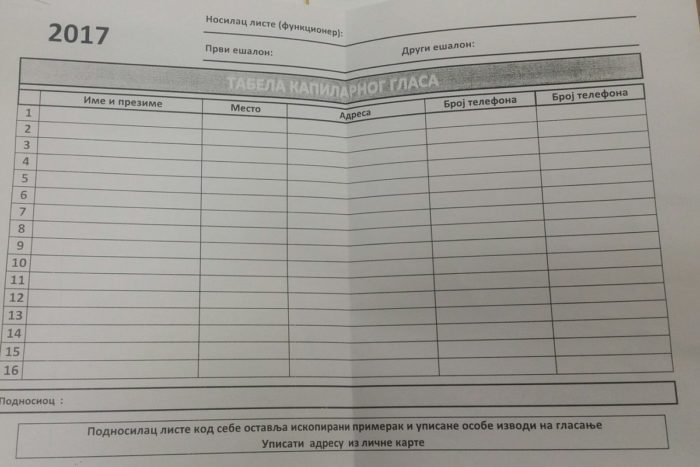 Кад пристанете да се учланите у СНС и добијете посао како бисте преживели, кад дође ред на изборе дају вам овакву листу и обавезу да скупите најмање 10 капиларних односно сигурних гласова за ту странку.