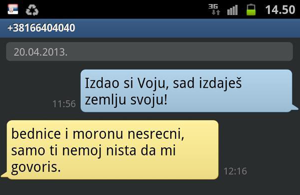 Неколико минута након Вучићеве поруке увредљивог садржаја, непознати мушкарац упутио је више позива на мобилни телефон Немање Шаровића као и веома озбиљне претње по живот због тога што се неко дрзнуо да „представнику грађана“ Александру Вучићу путем смс порука изнесе своје мишљење о Бриселској капитулацији.