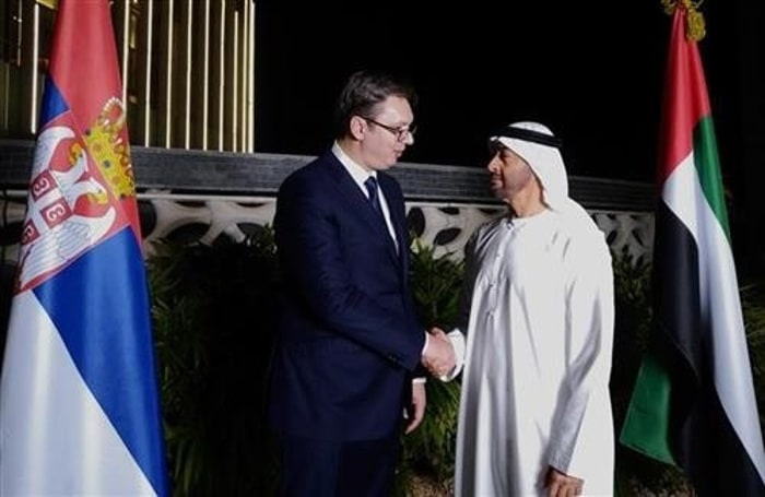 Шеик Мохамед је пожелео добродошлицу председнику Србије и са њим разговарао о начинима јачања сарадње у областима економије, трговине и развоја, као и актуелним регионалним и међународним питањима од заједничког интереса, наводи агенција WАМ.