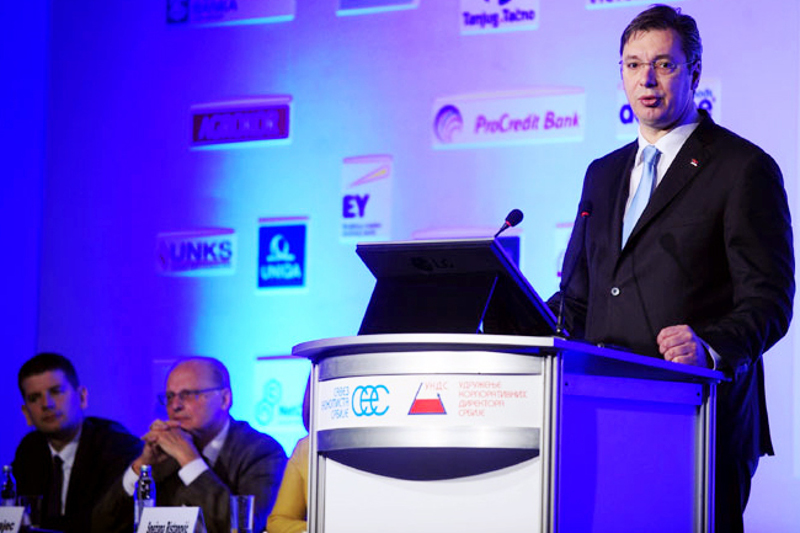 „У међувремену смо изгубли предузетнички дух, имамо интелигентну нациjу и људе, али нам се сав бизнис ослања на државу, а приватна инициjатива jе малтене нестала“, констатовао jе Вучић и позвао привреднике да помогну држави да се то промени.