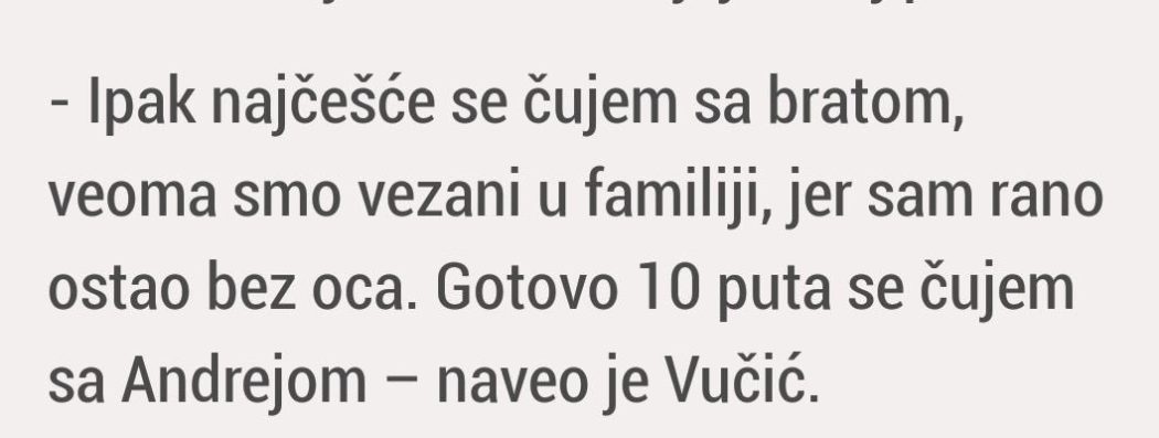 Он је наиме гостујући на телевизији Пинк, са увек неугодним водитељима Сањом Маринковић и Огњеном Амиџићем (јер је довољно храбар да се суочи са неким из опозиције), изјавио како се најчешће чује са братом и да је рано остао без оца.