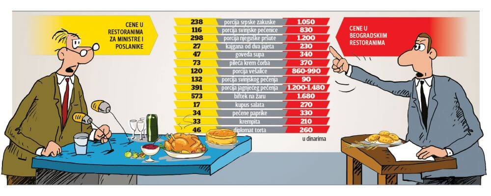 Цене у ресторанима у којима једу високи државни функционери и до десет пута су ниже него у просечним кафанама у које одлази обичан народ.